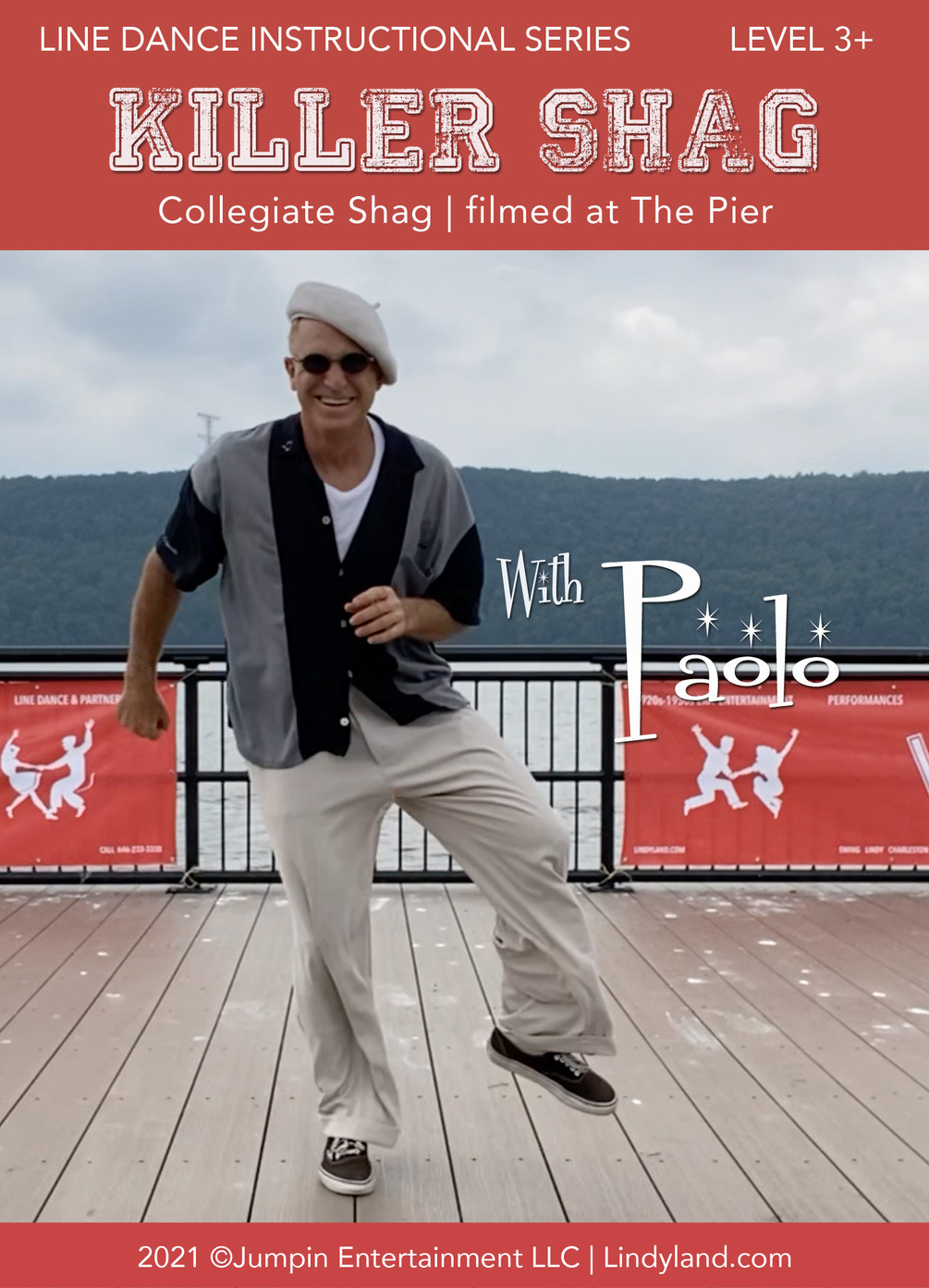 THE KILLER SHAG is a rapid fire high octane routine that's a collection of both Collegiate Shag, Boogie Woogie and Lindy Hop patterns. It's inspired and based off the KILLER BOOGIE routine. The main difference is the 6 count triple steps all are swapped out with COLLEGIATE SHAG patterns.